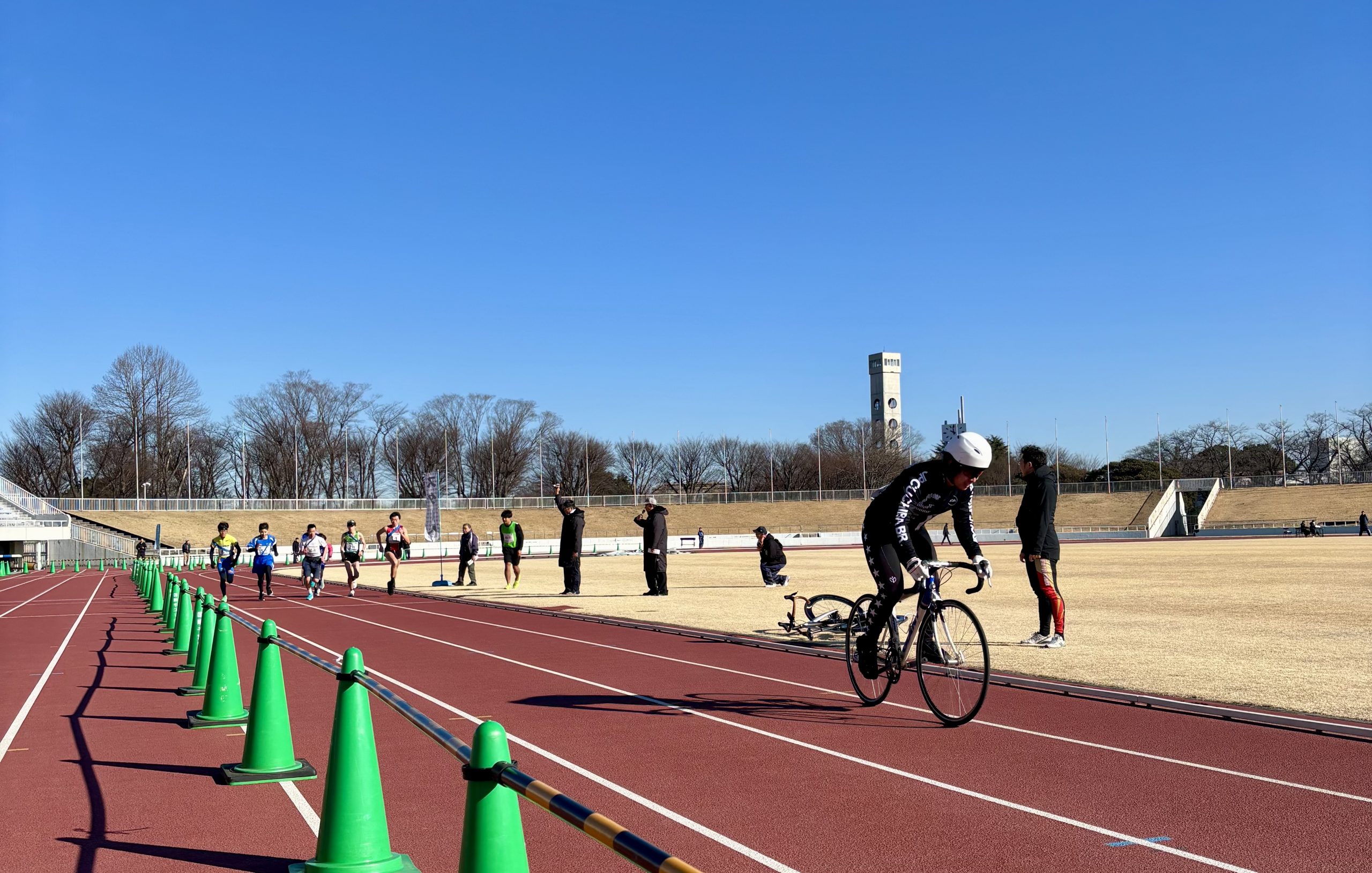普段トレーニングでも走ったりしない競輪選手ですが、今回は走路一周(約1.3km)に浦部、山下、鳥海で参戦しましたよ‼️